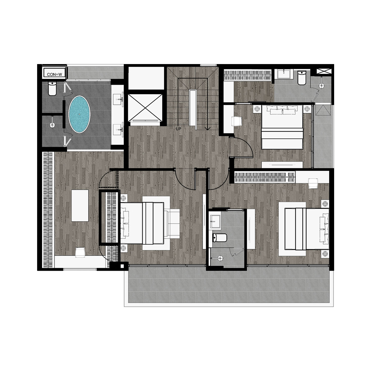 | นอกจากนี้ วนา เรสซิเดนซ์ เป็นบ้านที่สามารถตอบโจทย์การใช้ชีวิตของสมาชิกทั้ง 3 ช่วงวัย โดยให้ความสำคัญกับแสงและทิศทางลมจากธรรมชาติ ออกแบบขนาดพื้นที่ใช้สอยที่เหมาะสมกับความต้องการ ฟังก์ชั่นการใช้งานในห้องต่างๆรวมถึงการเลือกใช้วัสดุที่สวยงาม คงทนสามารถใช้ได้ในระยะยาว และที่นี่ได้จัดเตรียมลิฟท์พักอาศัยภายในบ้าน ด้วยขนาดที่กว้างพอสำหรับ Wheelchair ทั้งยังประหยัดไฟและสะดวกต่อการดูแล อีกทั้งที่นี่ออกแบบพื้นที่จอดรถ ให้รองรับได้ถึง 4 คัน ซึ่งเพียงพอต่อการใช้งาน |